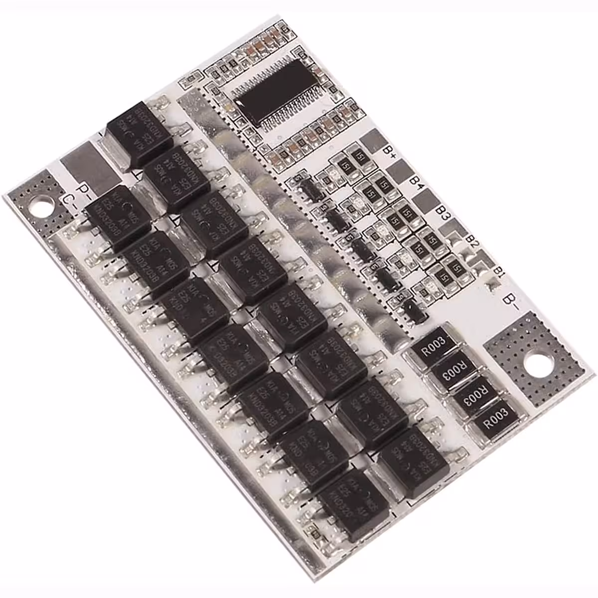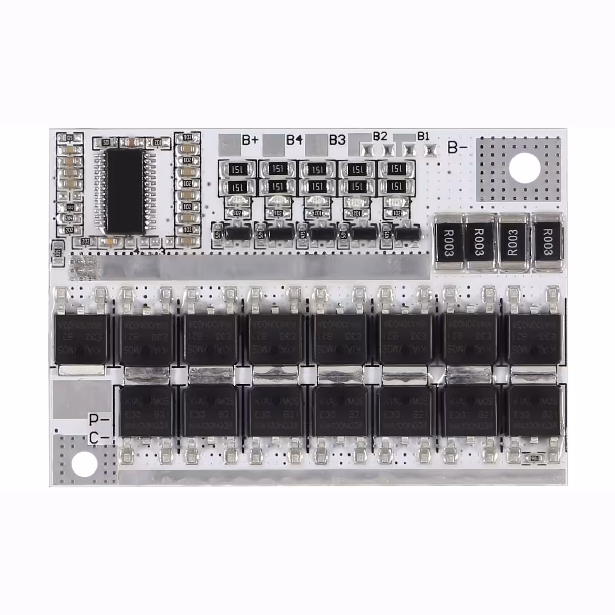 Модулът BMS 5S 100A осигурява пълна защита за 5 Li-Ion клетки 18650, свързани последователно, като гарантира балансиране, защита от претоварване, дълбоко разреждане, късо съединение и свръхток.