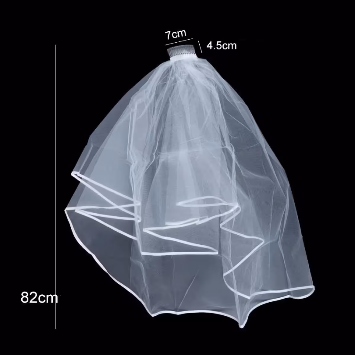 Впечатляваща булчинска воал, идеална за сватби през 2025 г., изработена от висококачествен фин тюл с елегантно укрепване по краищата. Тази бяла воал е специално предназначена за модерните булки, които желаят изискан и практичен аксесоар.