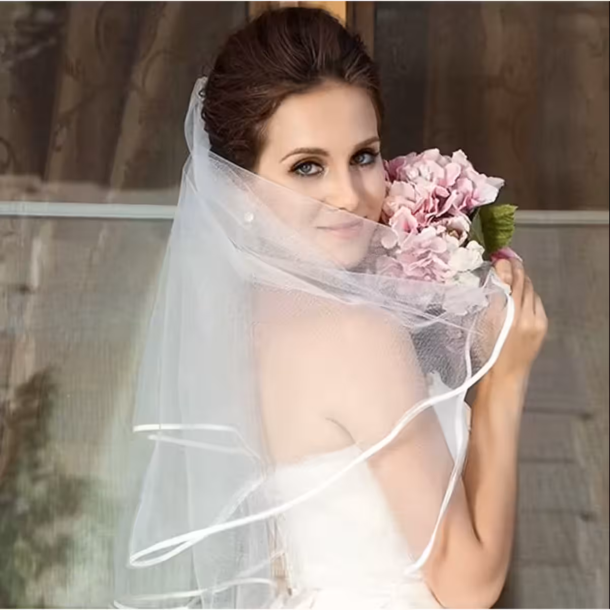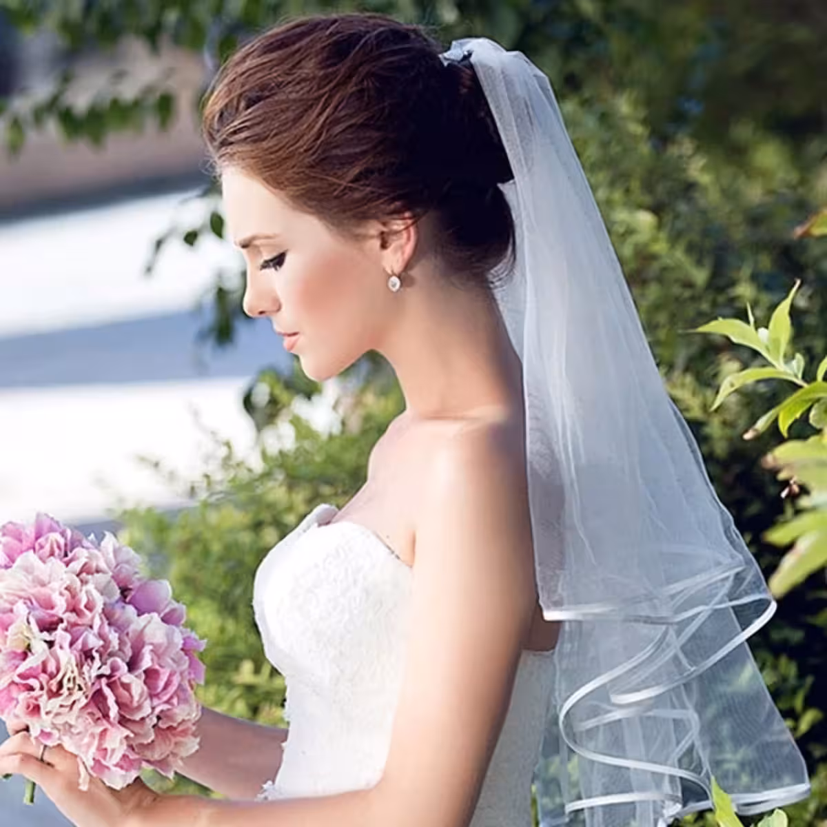Изберете тази къса или средна бяла тюлена воал за класически, но модерен вид, който ще привлече всички погледи в големия ден.