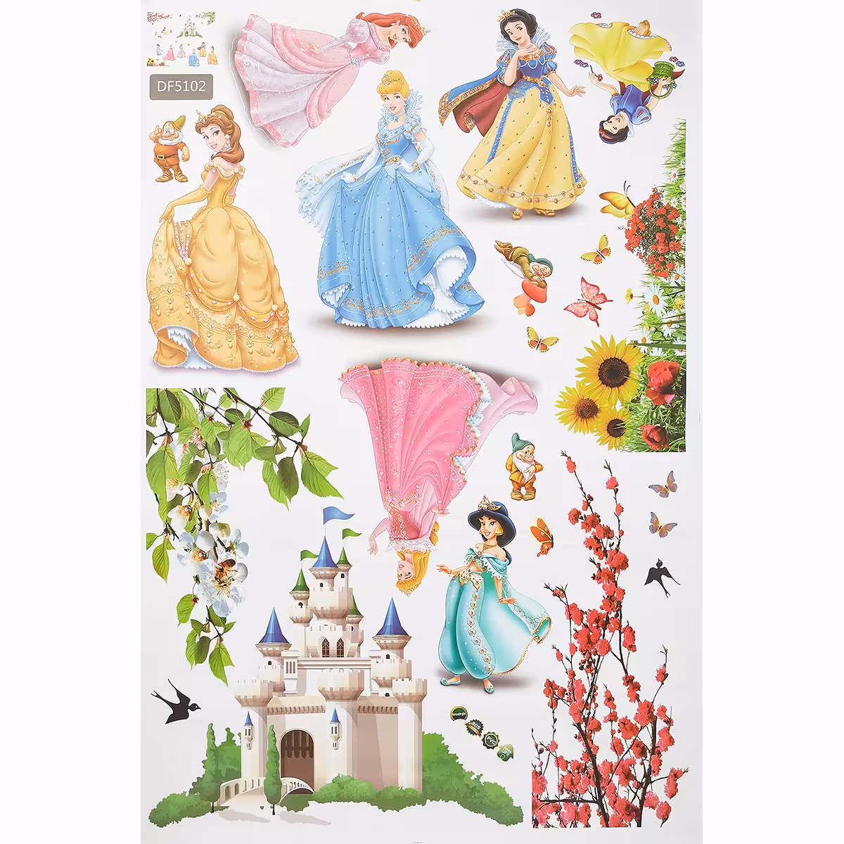 Детски стикер – Декоративни стикери за стена с принцеси на Дисни в замък, евтини и цветни