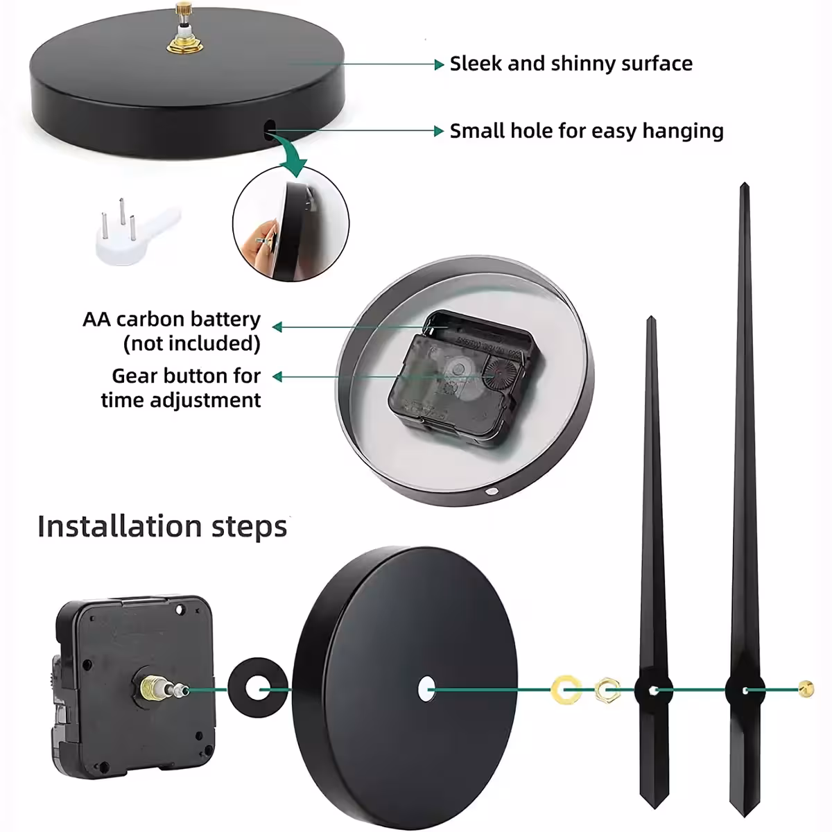 Безшумен механизъм – без досадно тиктакане. Работи с AA батерия (не е включена).