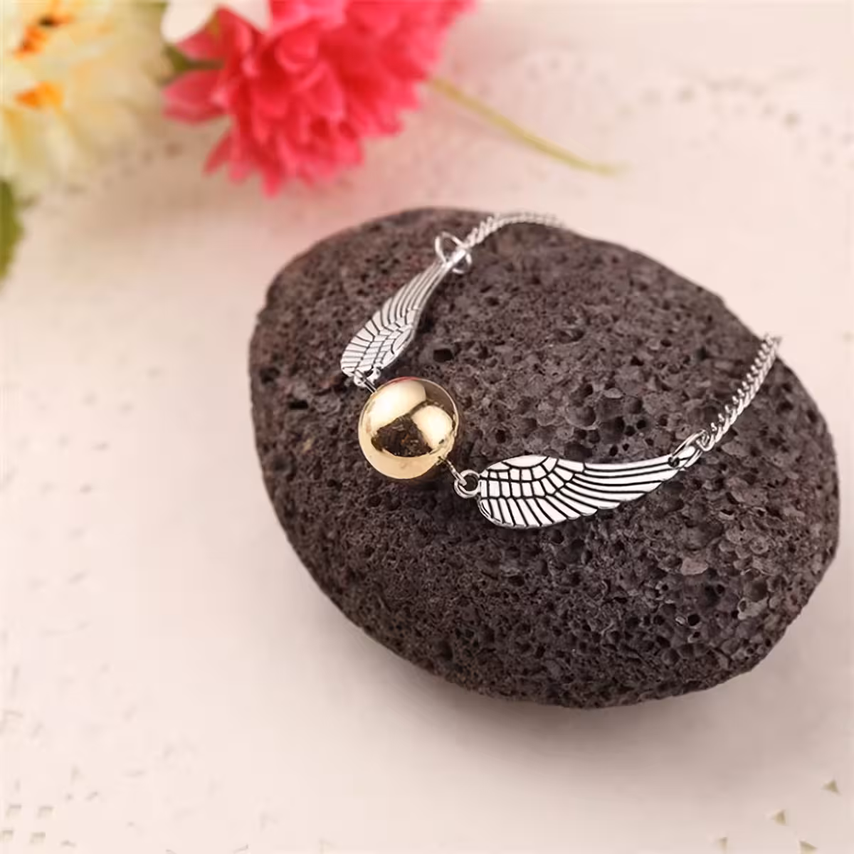 Тази гривна, вдъхновена от вселената на Harry Potter, е идеален избор за феновете на магическата история. Уникалният й дизайн включва легендарните символи: Златната Топка (Golden Snitch) и Deathly Hallows (Талисманите на смъртта), представляващи наследството на истинските магьосници.