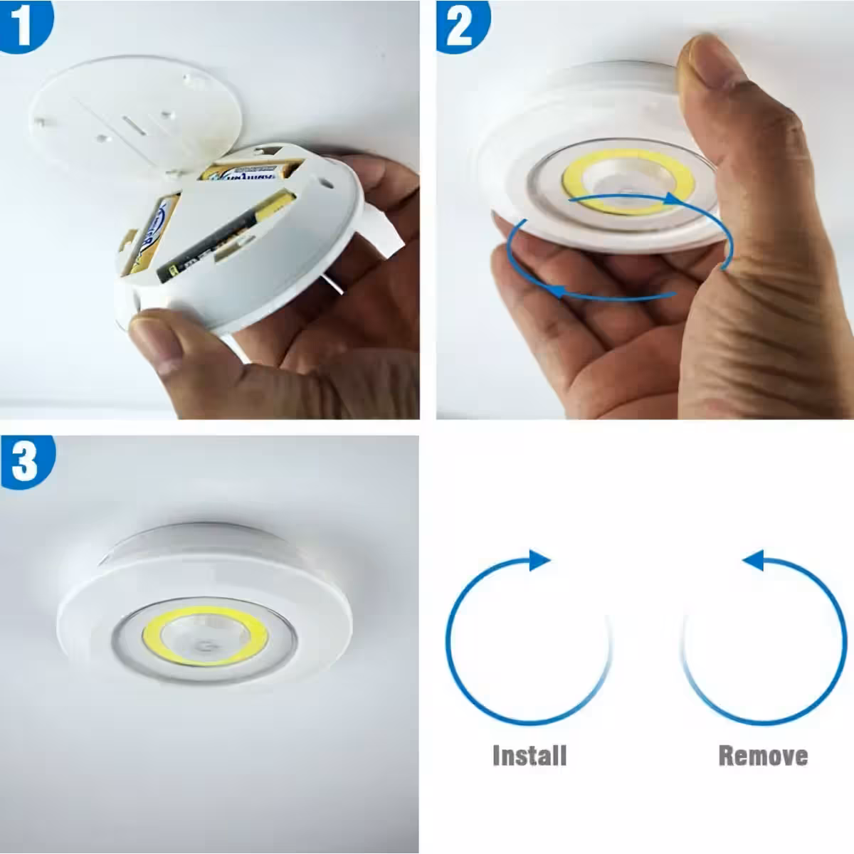 Спотовете работят с AAA батерии и осигуряват силна и икономична светлина.