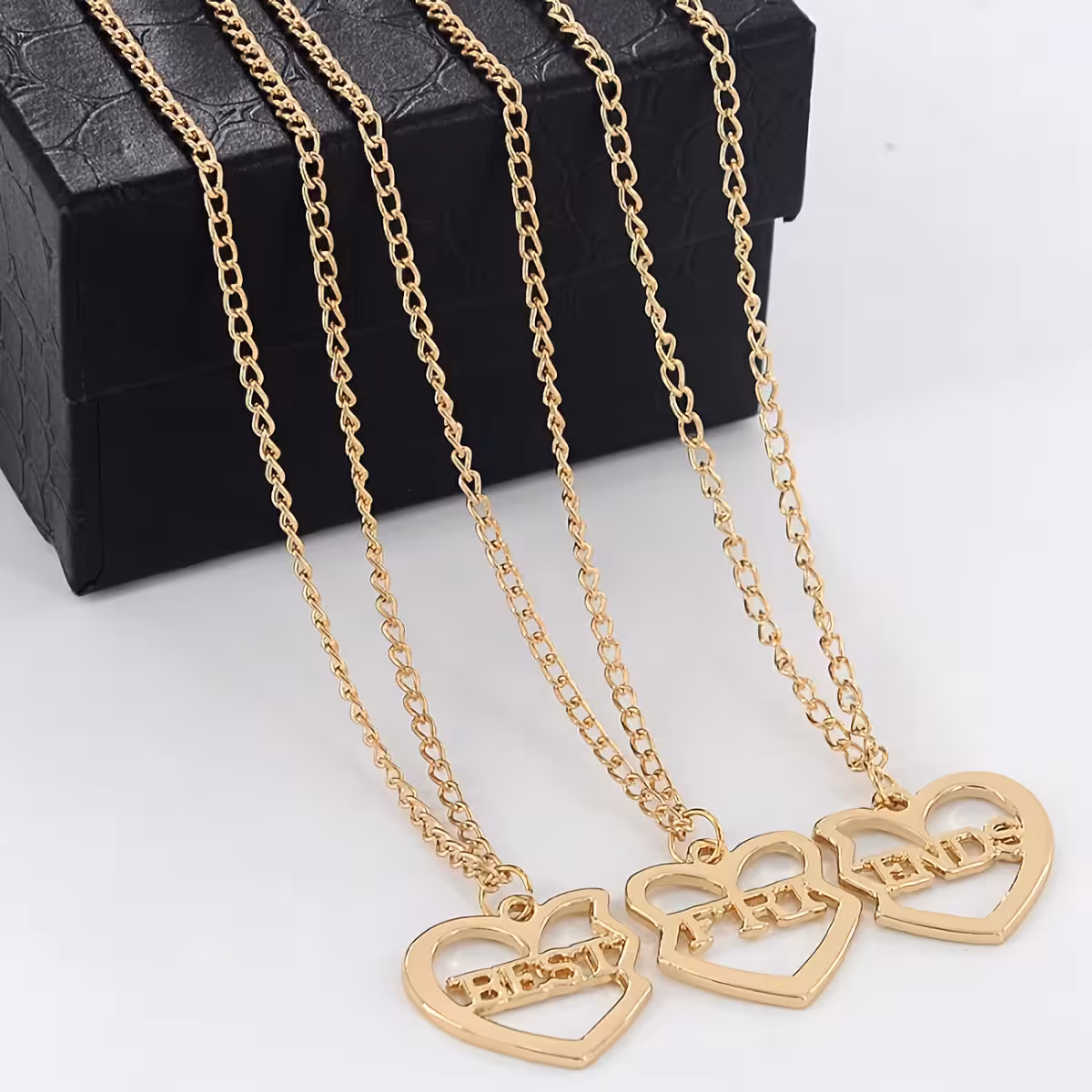Комплект от 3 верижки Best Friends Forever – перфектен подарък за най-добрите приятели. Този детски комплект верижки включва 3 висулки с тематичен дизайн „BFF“, идеални за празнуване на истинското приятелство.