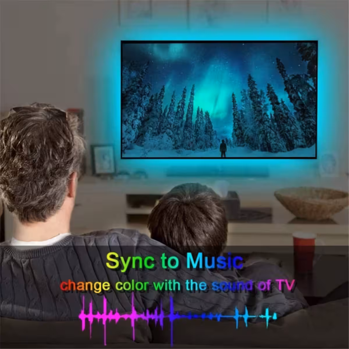 Тази LED лента RGB с дължина 10 метра предлага атмосферно осветление, идеално за телевизор, монитор, шкафове, рафтове или всяко пространство, което изисква декоративно осветление. С контрол чрез USB 5V и Bluetooth връзка, LED лентата се захранва лесно от USB порта на телевизора, зарядното за телефон или външна батерия.