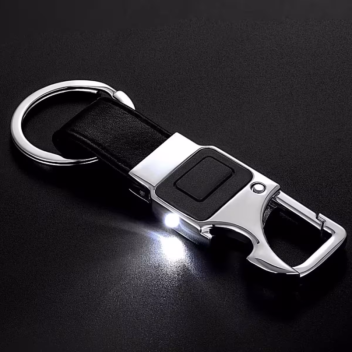 Луксозен ключодържател за кола от кожа с LED, отварачка за бутилки и фенер – перфектен подарък за мъже