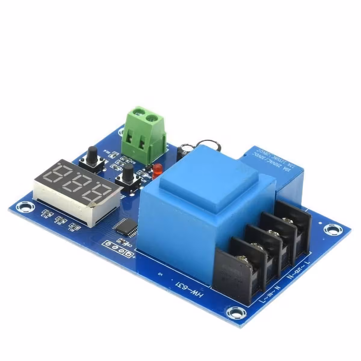 Електронен модул за контрол на зареждането на акумулатори и батерии с напрежение между 3.7V и 120V. Съвместим с батерии Li-Ion, Li-Polymer, Литий-Желязо, Ni-Cd, Ni-MH, Оловно-Киселинни. Позволява автоматичен контрол на зареждането чрез реле, като задава напрежението за включване и изключване на цикъла на зареждане.
