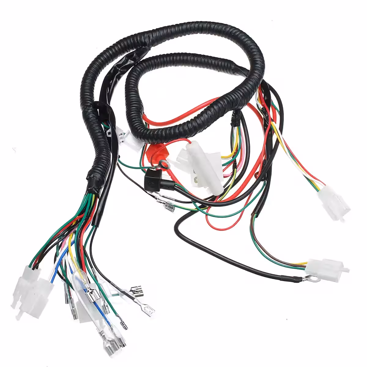Комплектът пълна електрическа инсталация за китайски ATV е предназначен за вертикални 4-тактови двигатели с електрическо стартиране и кубатура 150cc, 200cc, 250cc и 300cc. Идеално решение за ремонти, ъпгрейди или замяна на части при съвременни китайски ATV-та.