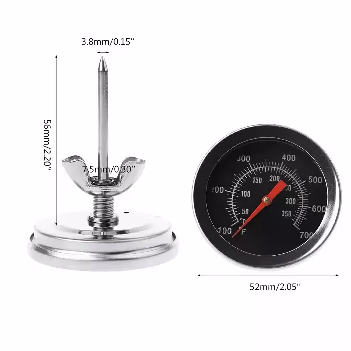 - Издръжлив аналогов механизъм с лесен за четене циферблат, измерващ температури от 0 до 350 градуса по Целзий.