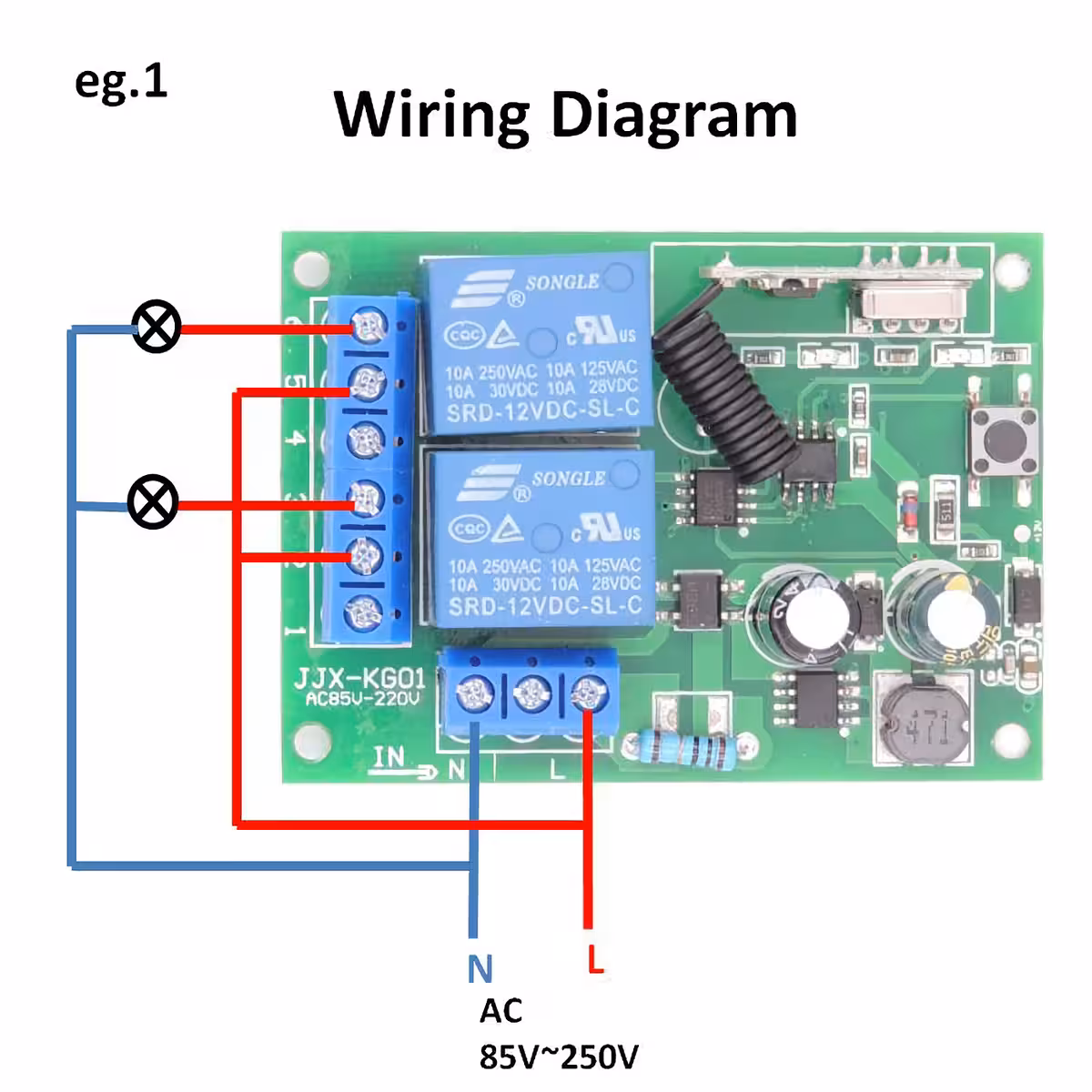 - Контакти на релето: 10A/30V DC или 10A/250V AC