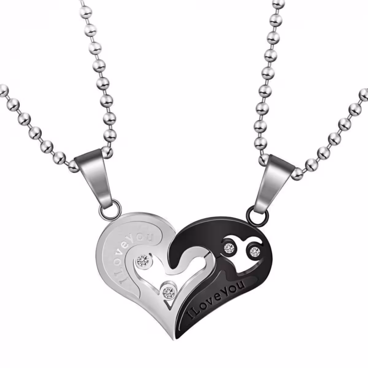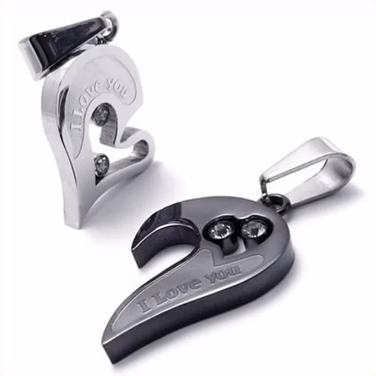 Гривни за двойки – 2 сърца комплект висулки за влюбени, от неръждаема стомана