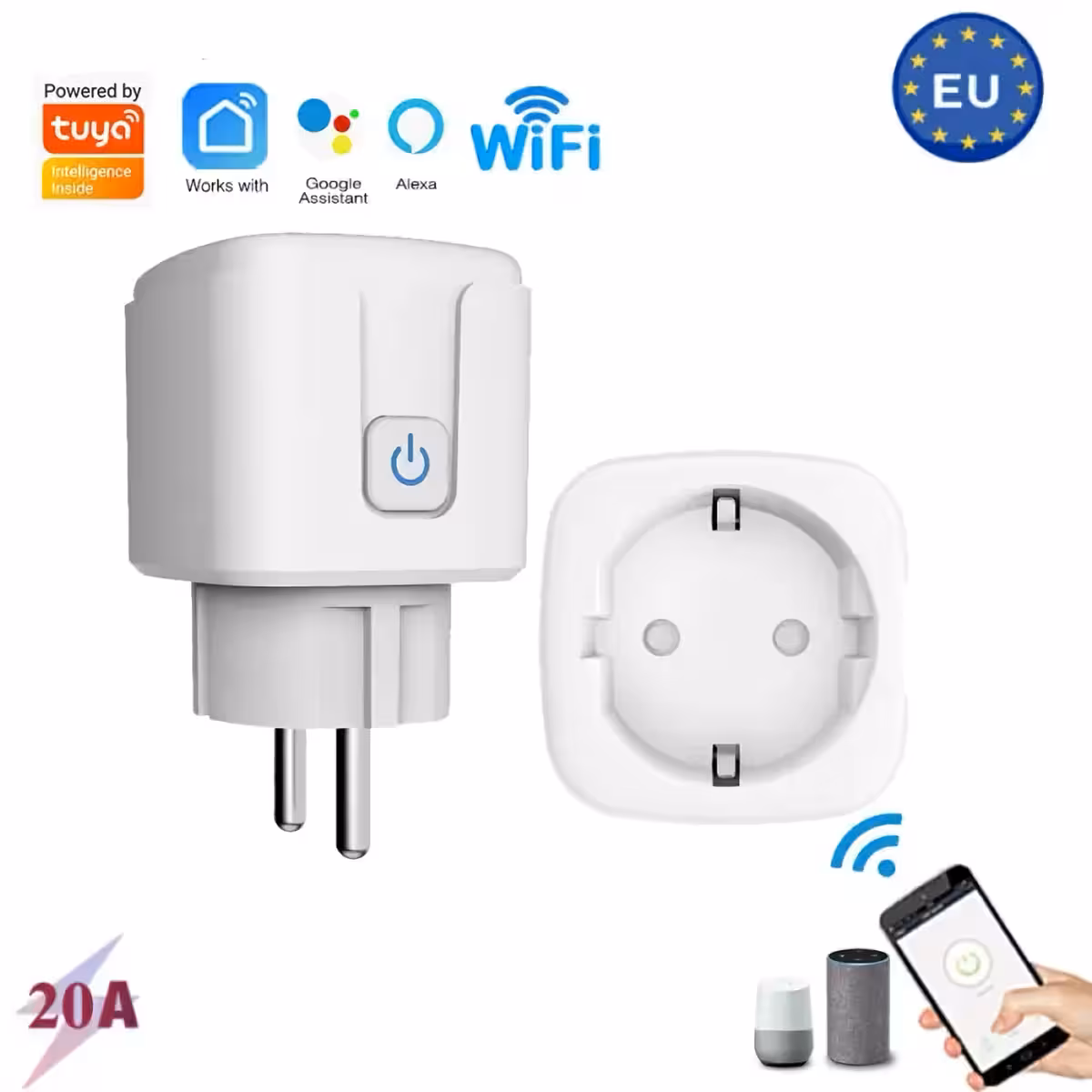 Smart WiFi контакт с измерване на енергийна консумация Tuya 20A 4400W – Интелигентен контрол и мониторинг
