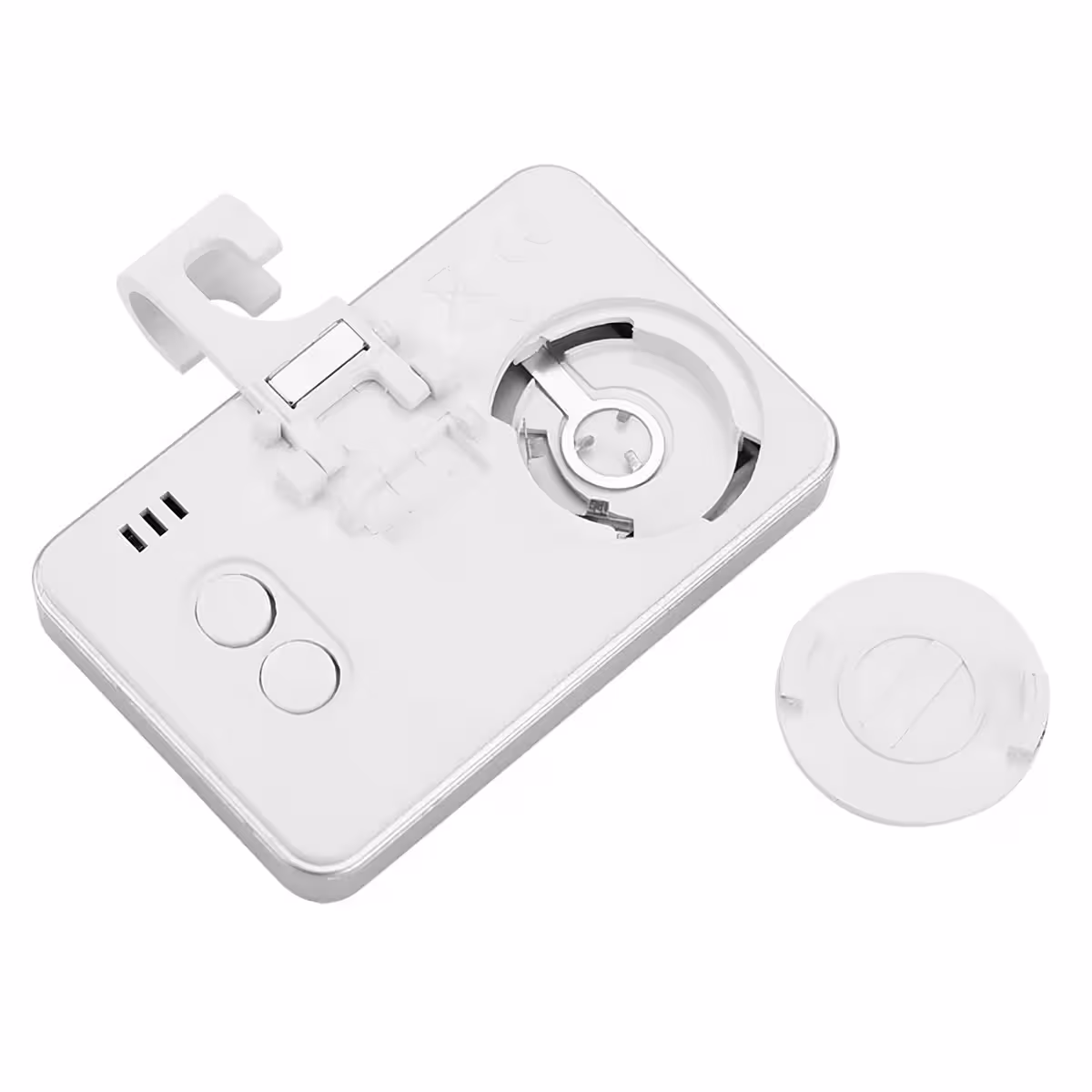 Гъвкав монтаж: три метода за поставяне – сгъваема стойка за маса, кука за рафтове, магнит за метални повърхности.